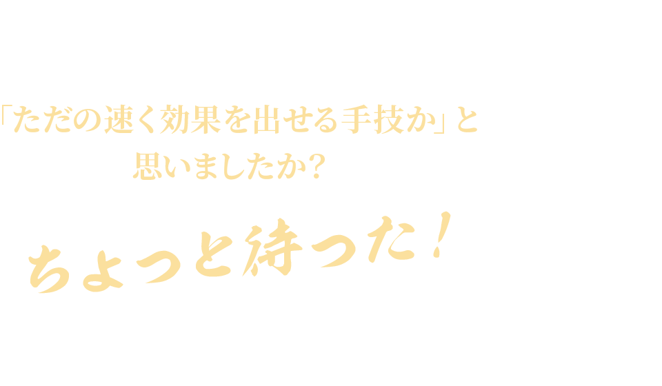 「それじゃあ、とにかく速い手技ってこと…?」と思われた方、そうではないのです。