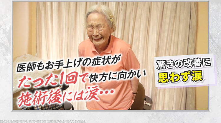 ウソのようなホントの、施術後の身体に患者さんはたちまち「夢じゃない…⁉」と驚き、過去イチ感動し、喜びのあまり涙を流されるのです。